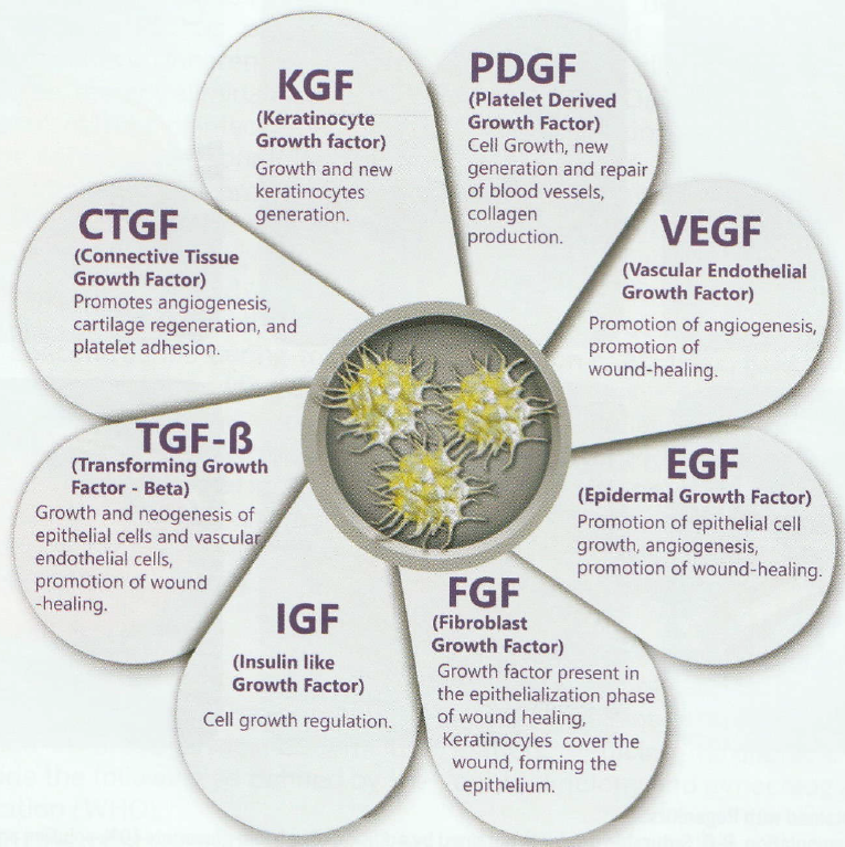 Plateletlerin salgıladığı büyüme faktörlerinden (Growth Factor) hangileri iyileşme sürecine önemli katkılarda bulunur?